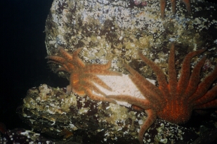 Sea stars including blood reds seemed to prefer the top portion of the